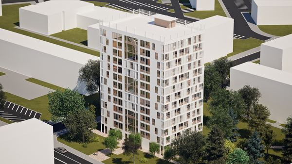 Le projet prévoit la réhabilitation d’un groupe de logement et la construction de nouveaux logements ainsi que d’une maison de retraite dans une cour fortement arborée.