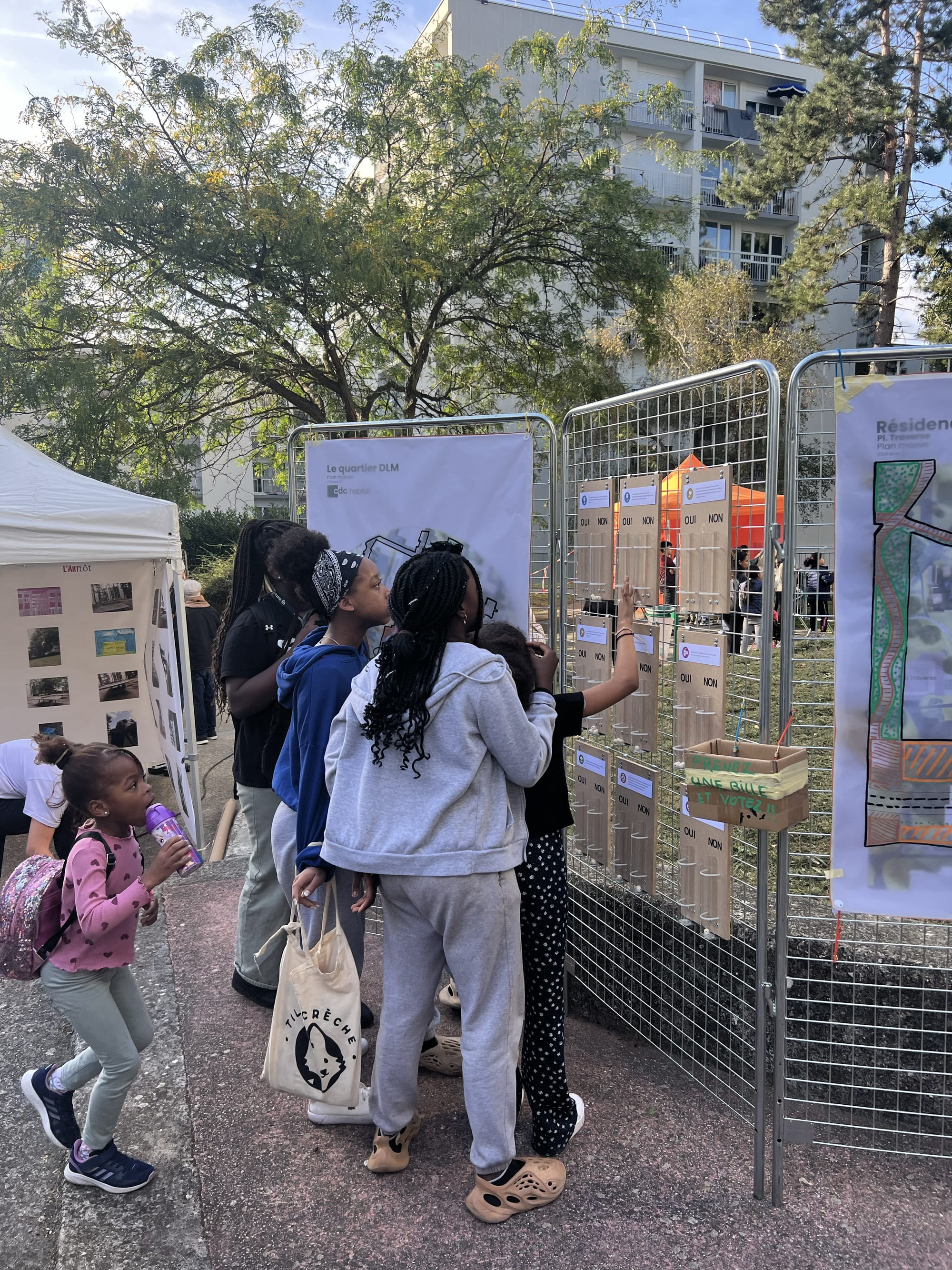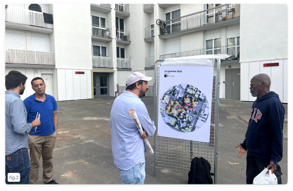 Le projet s’appuie sur une concertation active avec les locataires et les acteurs du site : ateliers en pied d’immeuble, supports ludiques et cartes interactives, dispositifs de vote pour prioriser les interventions.