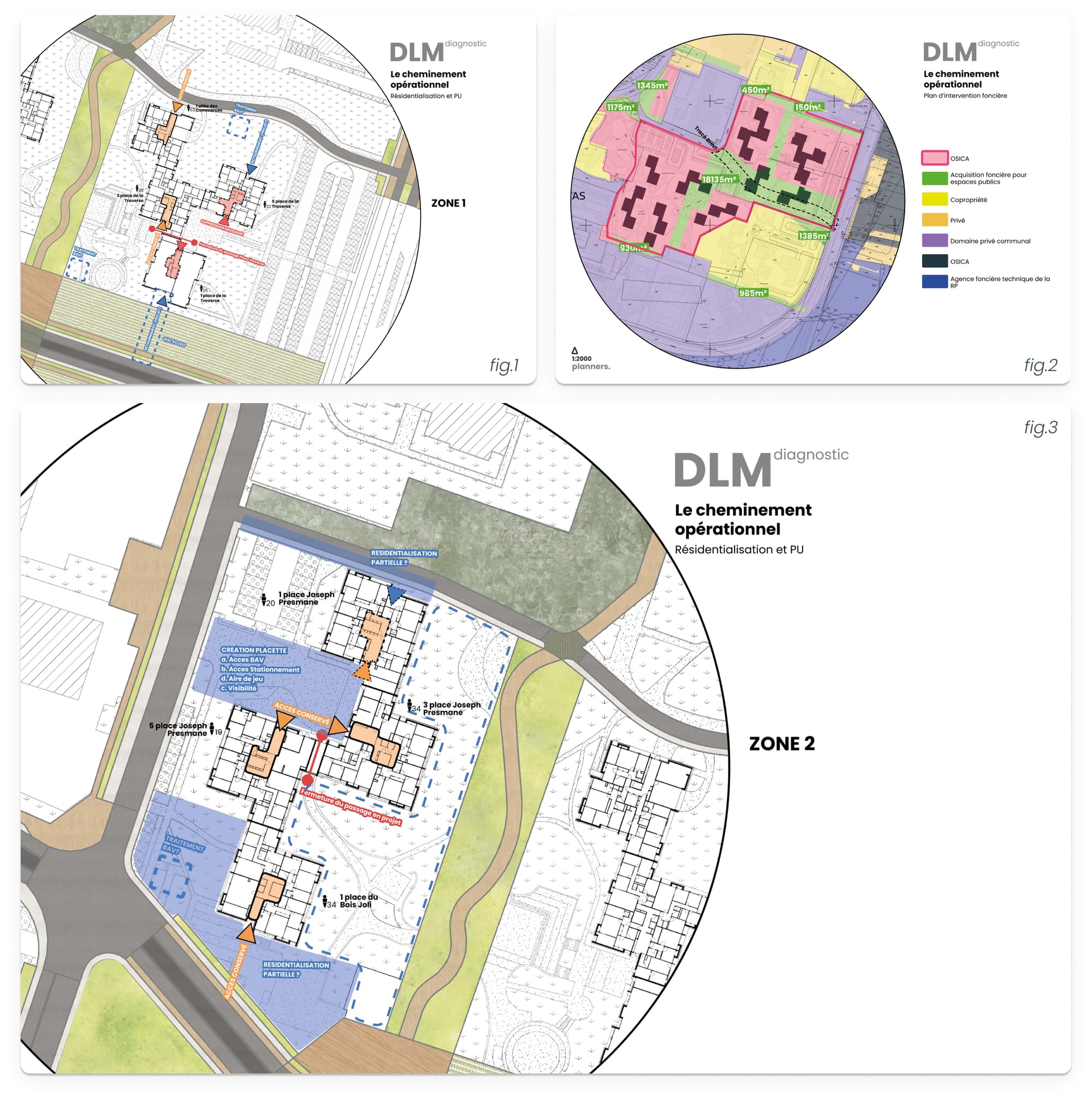 L’étude ne s’arrête pas à l’espace public : elle va de l’échelle de la ville jusqu’à celle du logement. Nous analysons les accès, les domanialités, la hiérarchie des espaces et la manière dont les habitants traversent et vivent le quartier au quotidien.