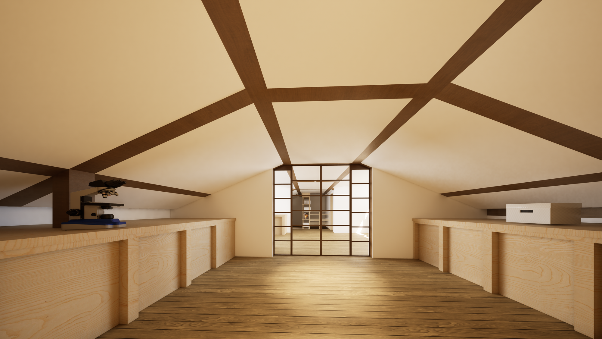 - lui, professeur de biologie, a besoin d’un atelier pour mener ses expériences, stocker ses collections d’insectes, de pierres et de spécimens dans de bonnes conditions, avec des rangements dédiés ;