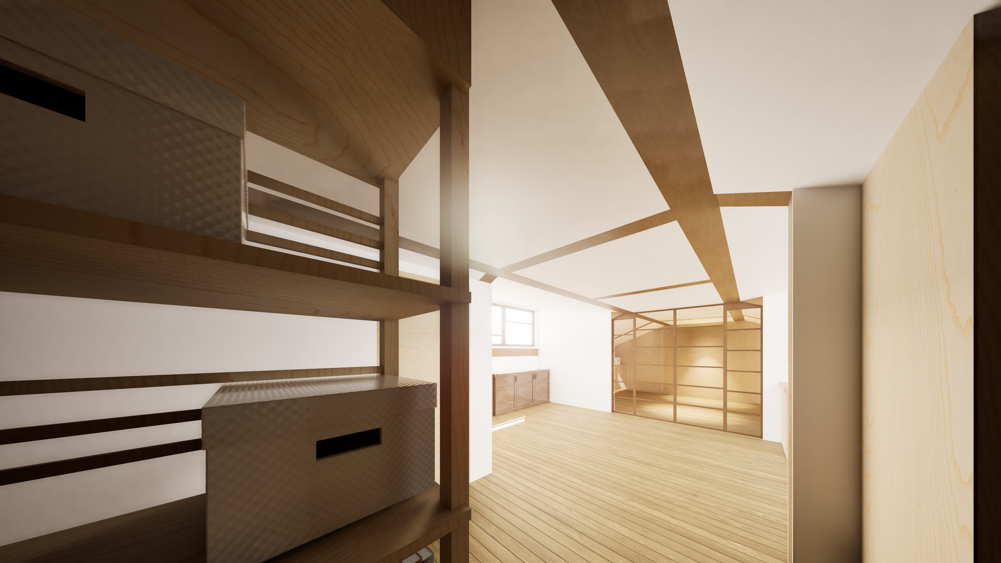Le couple a également deux filles qui partagent aujourd’hui une même chambre et se trouvent à l’étroit. Le projet prévoit pour chacune un espace d’intimité :