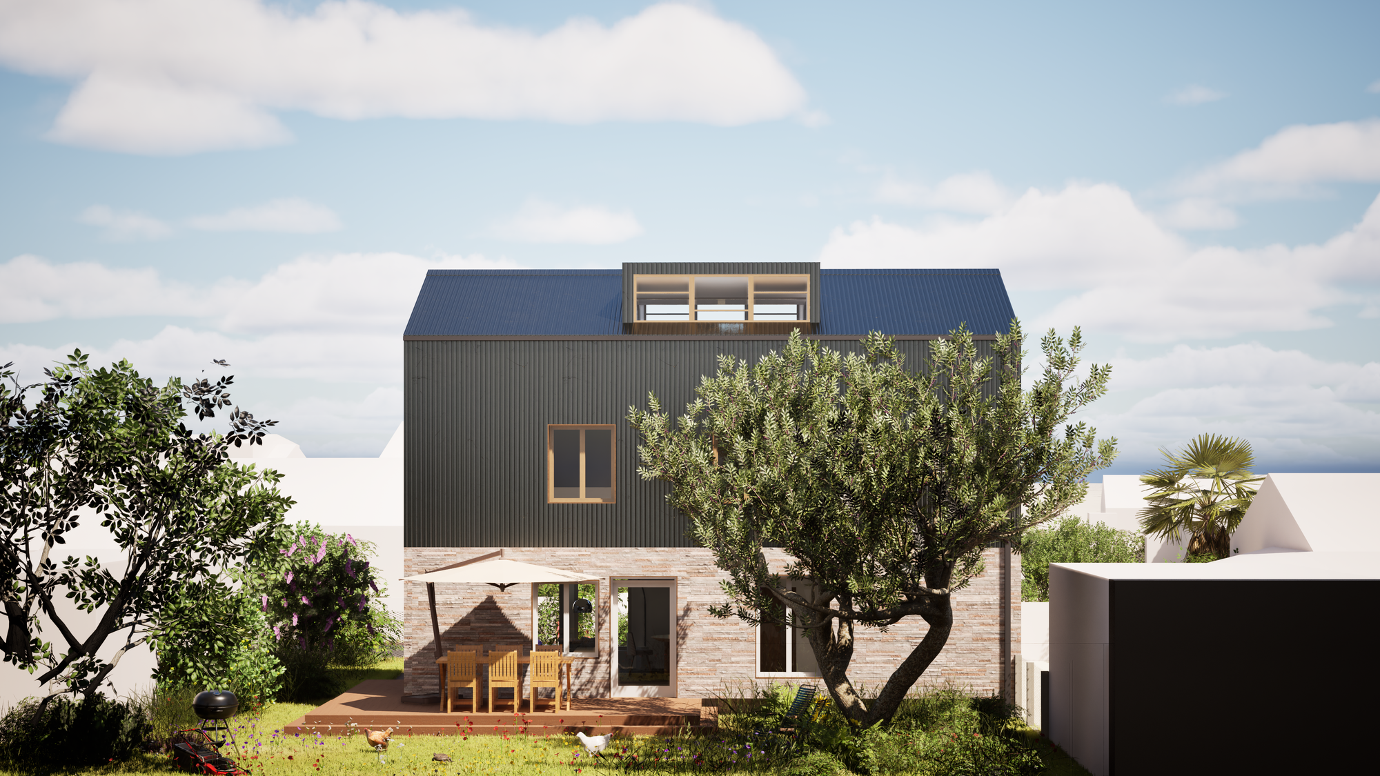 - toiture et bardage contemporains,
