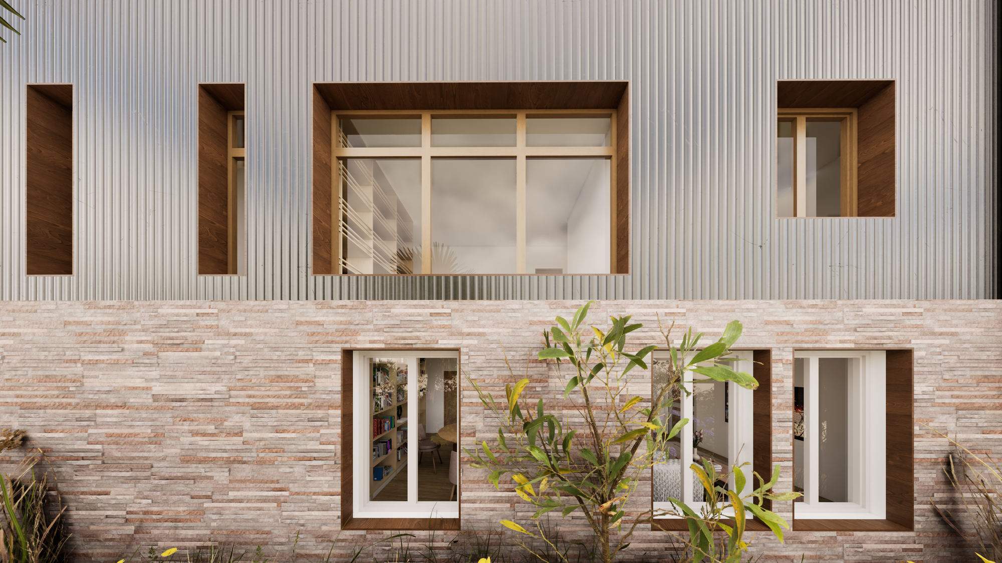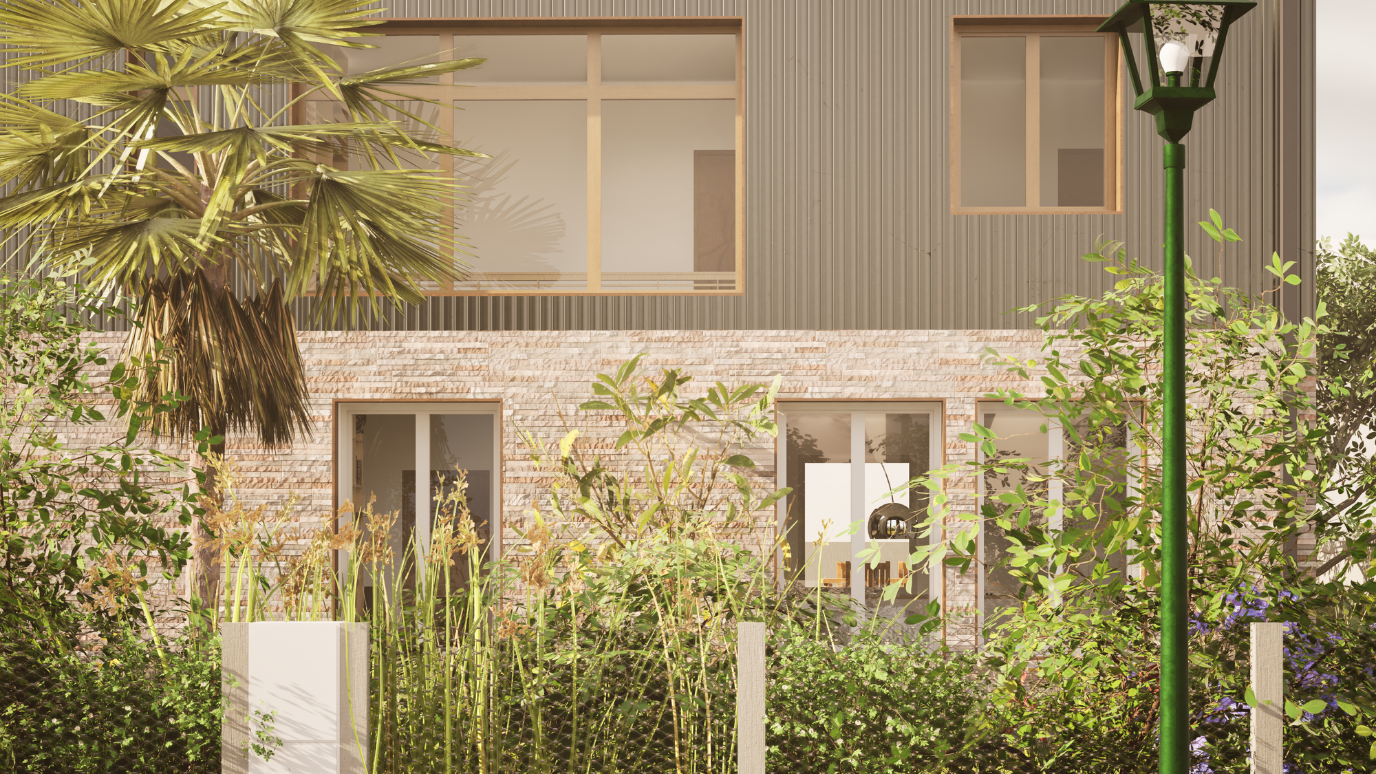 L’architecture extérieure assume le geste de surélévation tout en restant sobre :