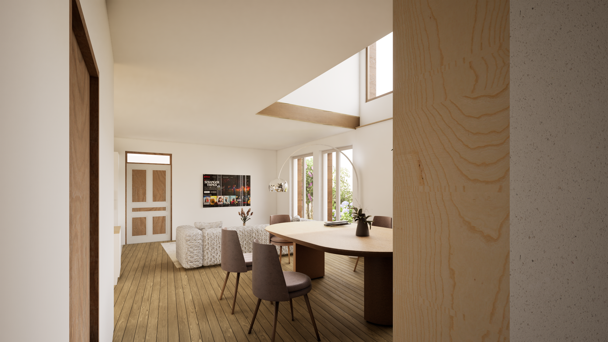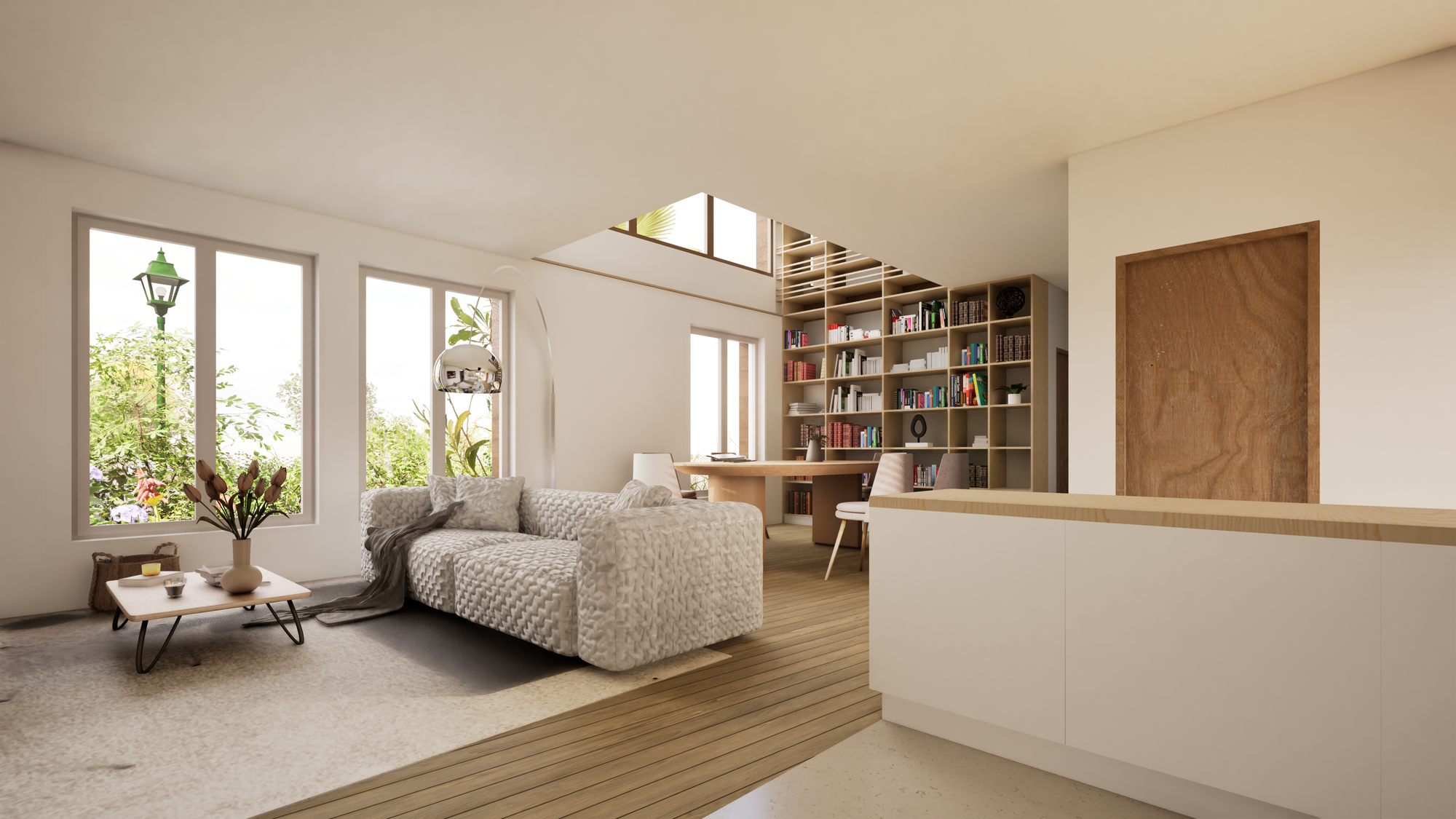 Les nouvelles ouvertures apportent de la lumière naturelle et des cadrages sur le jardin, tout en préservant l’intimité vis-à-vis des voisins.